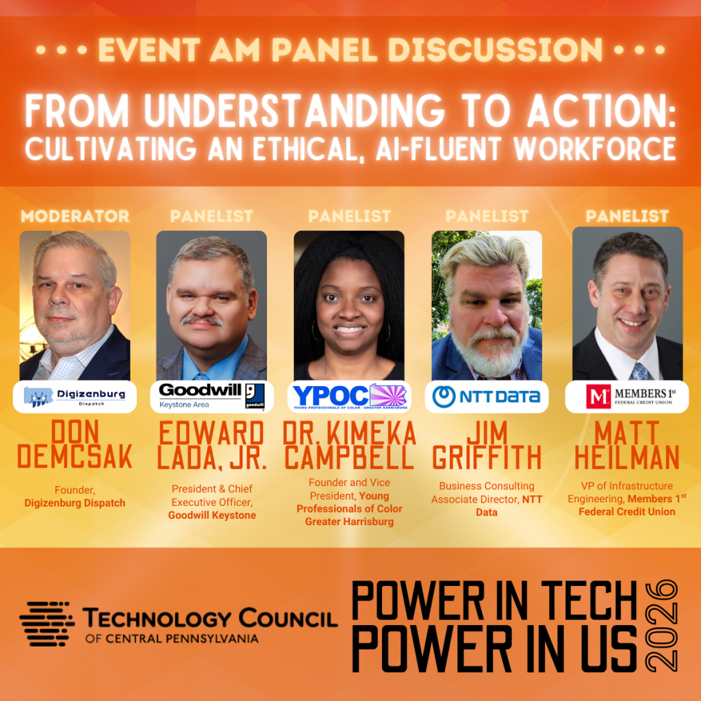 Technology shapes the world we live in—but who gets to shape technology? Power in Tech, Power in Us 2026 is an annual gathering of industry leaders, educators, and innovators committed to expanding access, fostering opportunity, and driving meaningful change in Central PA’s tech community. This event highlights the challenges and opportunities in building a tech workforce that reflects the full breadth of talent, perspectives, and experiences in our society. Through engaging discussions, expert panels, and actionable insights, attendees will explore ways to remove barriers, create inclusive pathways into tech careers, and ensure that innovation is driven by a wide range of voices. Whether you’re a business leader, entrepreneur, educator, or aspiring tech professional, Power in Tech, Power in Us 2026 provides a space to connect, learn, and collaborate on shaping a more dynamic, accessible, and forward-thinking tech industry. Together, we can unlock potential, open doors, and build a future where technology works for everyone—because technology is powered by all of us.